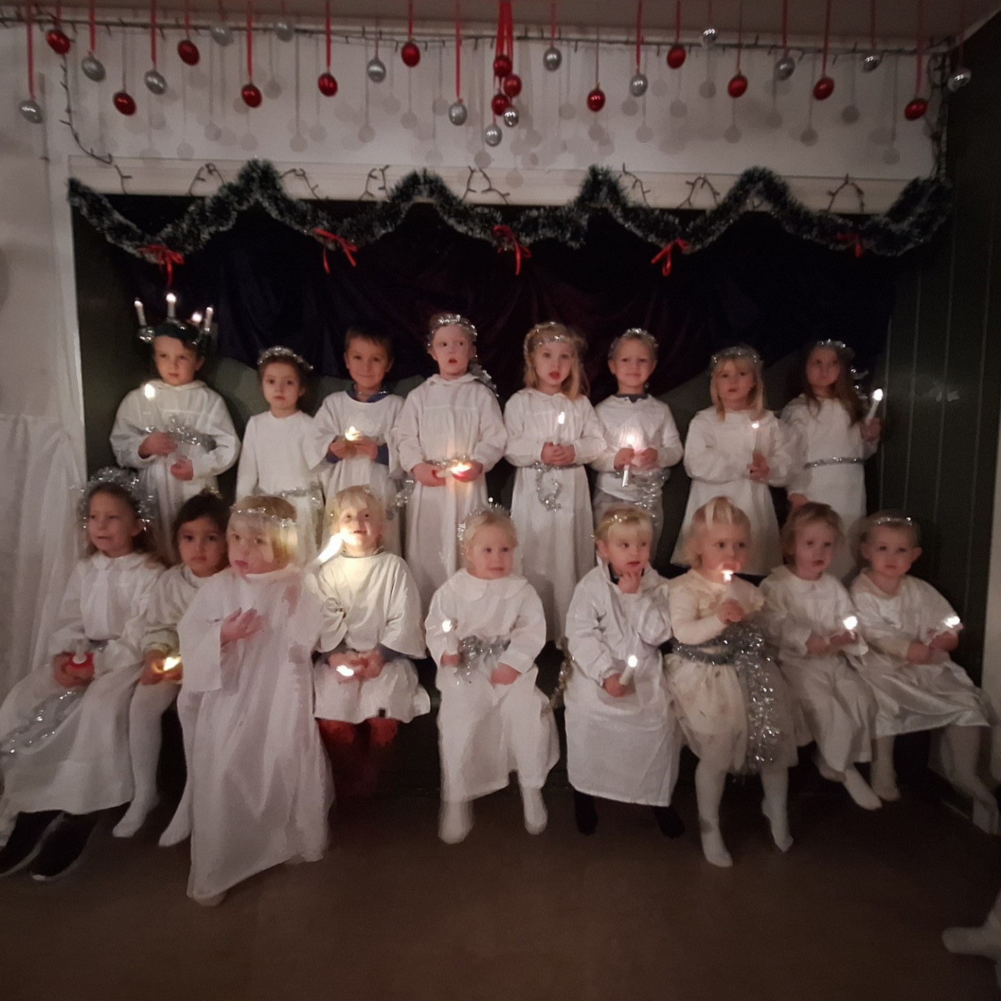 Ikke langt fra barnehagen har vi denne flotte lavvoen. Her er vi på tur sommer som vinter. Nå gleder vi oss til snøen snart kommer og vi kan ake og base rundt i skogen. Vi varmer oss med fyr i ovnen og sprakende bål på bålplassen.